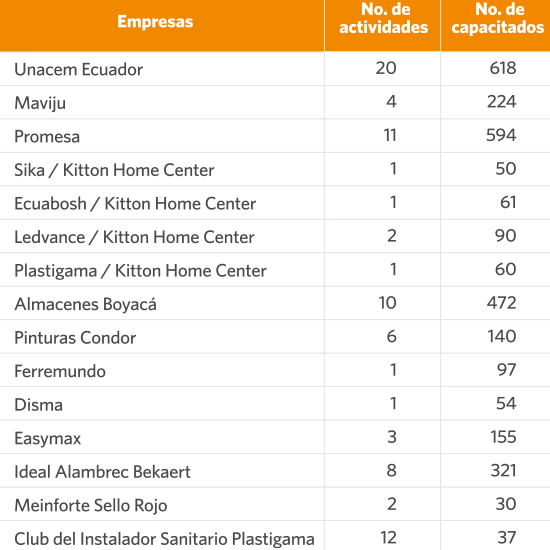 Esto dio como resultado 84 actividades, significando un total de 3.003 personas capacitadas, en diferentes ciudades, quienes obtuvieron información técnica sobre: seguridad en obras, nuevas líneas de productos e instalación.
