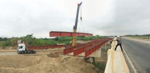 Al momento, la concesionaria Concegua instala y suelda las vigas metálicas que se extenderán a lo largo del viaducto.