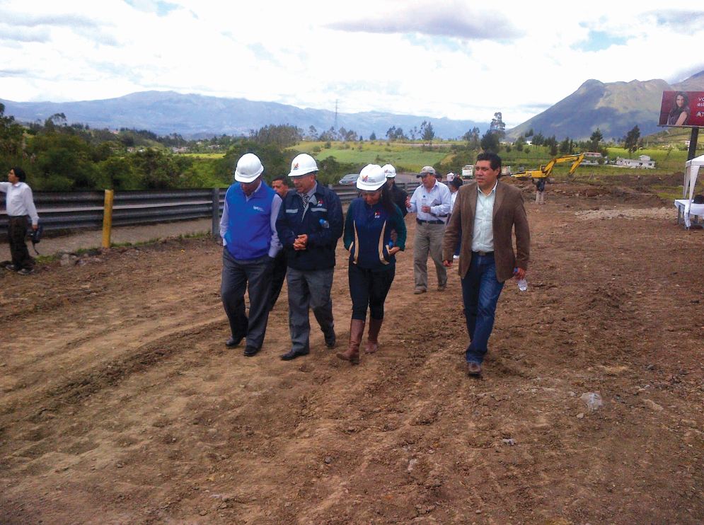 Para constatar el progreso de la obra, el delegado ministerial realizó un recorrido conjunto con la directora provincial del MTOP Imbabura, Gabriela Espín; el prefecto de Imbabura, Diego García; el alcalde de Otavalo, Mario Conejo y delegados de la fiscalización y de Panavial.