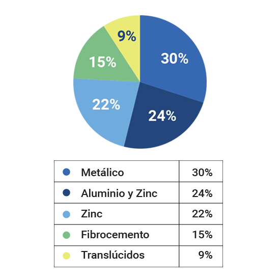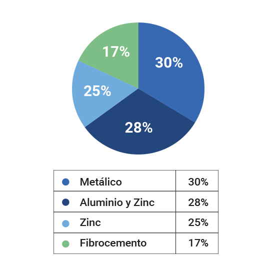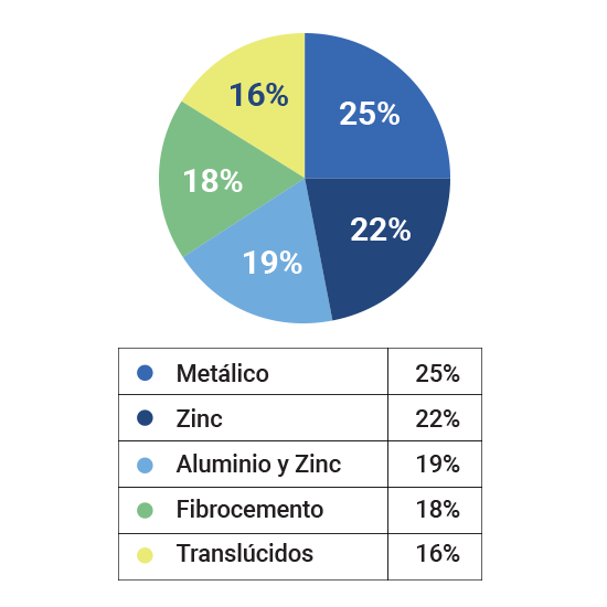 • Las cubiertas de aluminio y zinc, y las de sólo zinc se venden en un 24% y 22% respectivamente.