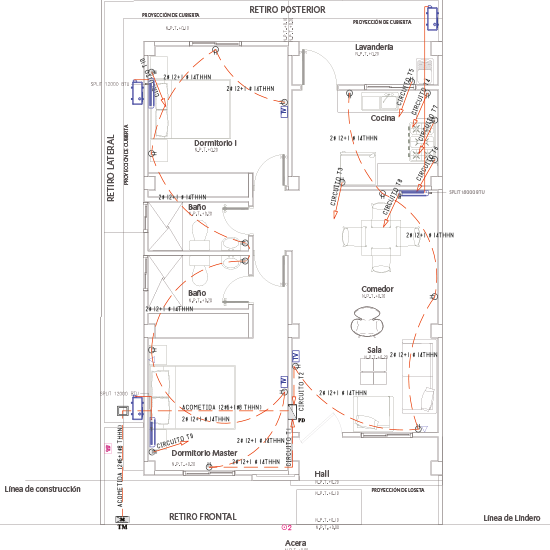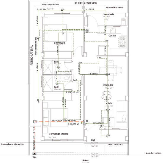 Toda construcción requerirá de planos eléctricos, los cables deberán ser ejecutados en detalle por el equipo de instalaciones eléctricas en obra.