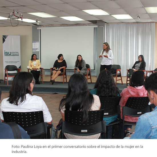 “Considero que la mujer puede hacerlo todo, es decir no debe limitarse sino más bien, incursionar en campos que hasta hace algún tiempo no eran “adecuados” para las mujeres, porque con esfuerzo y valentía se puede cumplir metas, tanto en el campo personal, estudiantil como laboral. La limitación está únicamente en nuestra mente, pensar que sí podemos y llenarnos de nuevos paradigmas. Hoy siento que mis fortalezas son mis conocimientos y trayectoria para avanzar en mi profesión y seguir cosechando éxitos en la empresa, además del apoyo de mi familia que es fundamental para seguir adelante” comentó Paulina, quien además participó en el primer conversatorio sobre el impacto de la mujer en la industria en el Instituto Superior Central Técnico, panel donde se expuso los retos a los que se enfrentan las profesionales en el campo laboral del país.
