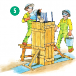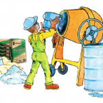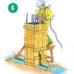 PASO 5 : Con un balde pequeño colocar el hormigón que está en la carretilla en el encofrado que previamente debe estar armado y con el acero de refuerzo. No dejar caer el hormigón de una altura mayor a 2 metros.