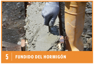 Armados y fijados los perfiles del encofrado se procede a vertir el hormigón y, usando llana metálica o bailejo se da el acabado en la parte superior del bordillo que se está fundiendo.