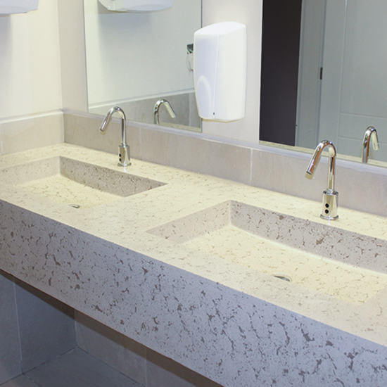 Lavamanos y mobiliarios hechos totalmente a la medida, reducen los tiempos de instalación y ofrecen una muy buena relación costo beneficio. Estos productos son fabricados en moldes, favoreciendo el acabado estético evitando las uniones y cortes.