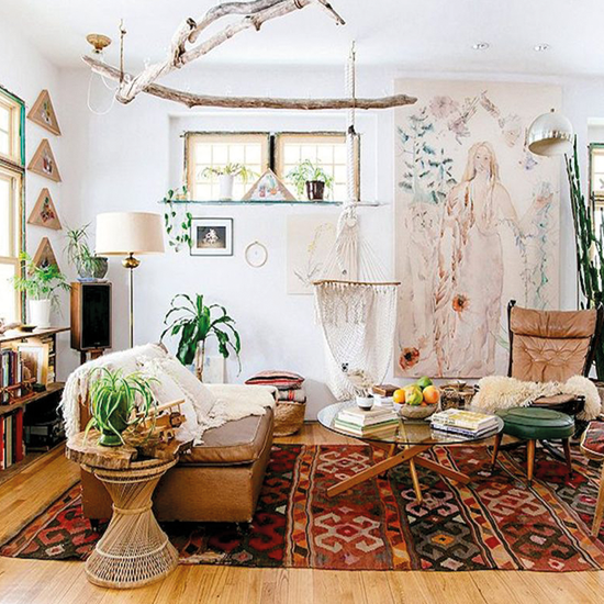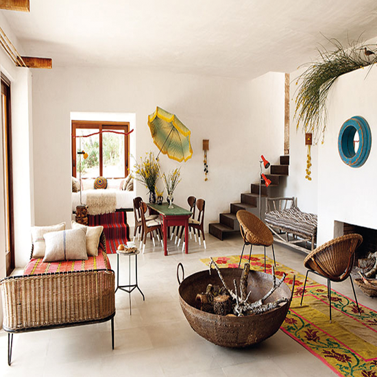Tiene como base tonalidades vibrantes e intensas, tanto en textiles estampados en combinación con diferentes tipos de mobiliario, dando como resultado un mix perfecto, todos ellos conviven con naturalidad en las decoraciones para crear atmósferas con una energía única que originan un equilibrio, fruto de la mezcla entre la creatividad y elegancia. Los muebles son un must del estilo Boho Chic y cuanto más desgastados y envejecidos están, mejor. Ya sean piezas vintage, exóticas, las recuperadas, etc., son las grandes protagonistas de este estilo decorativo.