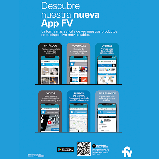 FV, líder en fabricación de sanitarios, griferías y complementos de baño, apuesta por la tecnología para brindar un servicio destacado a sus clientes con el lanzamiento de las nuevas Salas Virtuales y APP FV, herramientas cuyo objetivo es facilitar la visualización, cotización y compra de productos.