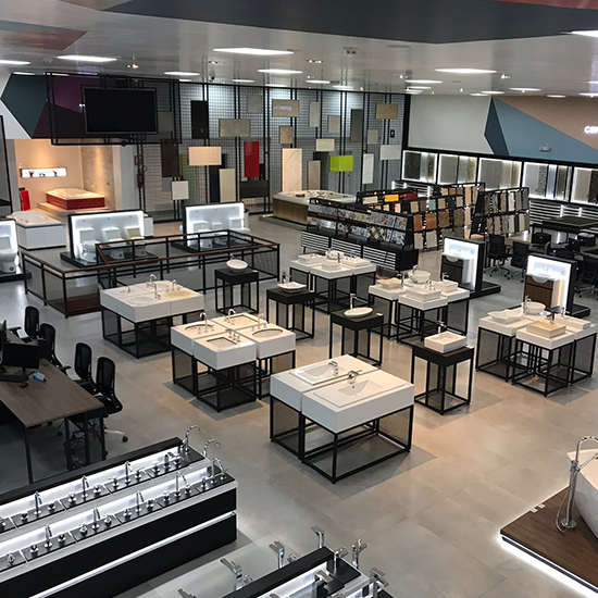 La sala FV Amazonas cuenta con una gran variedad de productos exhibidos, como: grifería, sanitarios, cerámica, tinas, muebles y fregaderos de cocina. La amplitud de sus espacios y exquisito gusto por lo simple, pero bien hecho, facilitan la decisión del cliente.