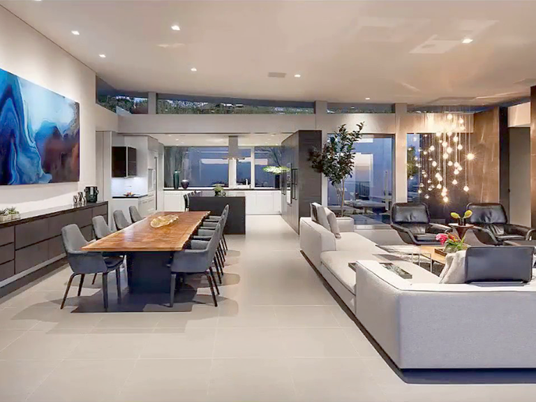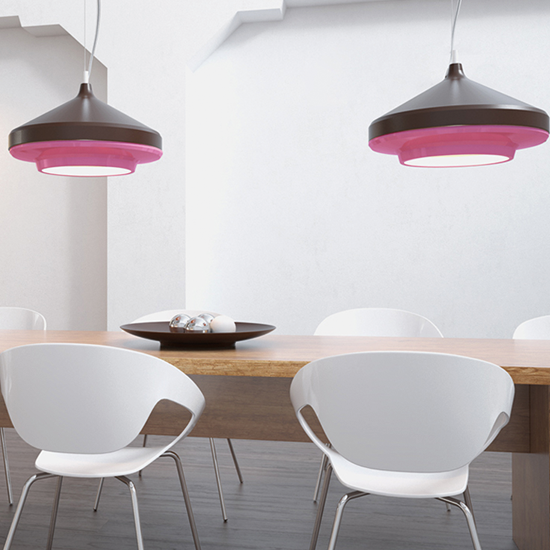 Una forma de cambiar totalmente el aspecto de toda la sala es reemplazando los focos convencionales o ahorradores e invertir en una estupenda lámpara decorativa para el techo. Dependiendo del efecto que necesites y que haga juego con el resto de la sala, encontrarás luces LED en línea recta, en ondas o circulares aplicadas en un techo falso de tal forma que se observa el techo en dos niveles.