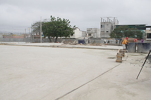 La obra contratada se edifica en un área de 6.500 metros cuadrados y comprende trabajos de replanteo, nivelación, construcción de bordillos, aceras, tuberías para agua y sistema eléctrico. Se realizará además el mejoramiento de la cancha de tenis existente en el lugar y se construirán tres portones de ingreso.