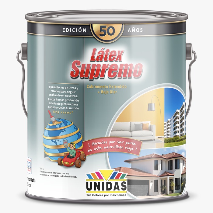 Otra cualidad de la nueva versión de Látex Supremo es el reducido olor que emana al momento de ser aplicado. Además, posee otras características como protección plástica y resistencia a microorganismos, fuertes lluvias y cambios bruscos de clima. Gracias a la tecnología 100% acrílica modificada e incorporada a su formulación, la película aplicada se vuelve aún más resistente a los cambios imprevistos del medio ambiente.