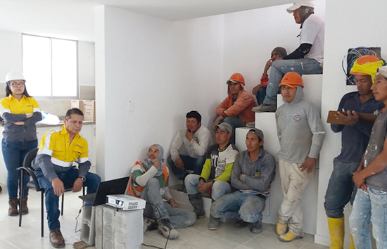 El 19 de marzo Maestro Seguro llegó al Conjunto habitacional Valle Grande de la capital, obra en la que la Arq. Tatiana Cáceres, capacitadora de Unacem Ecuador, pudo dar a conocer a los 20 obreros presentes los riesgos que a diario ellos tienen en la obra y cómo prevenir accidentes.