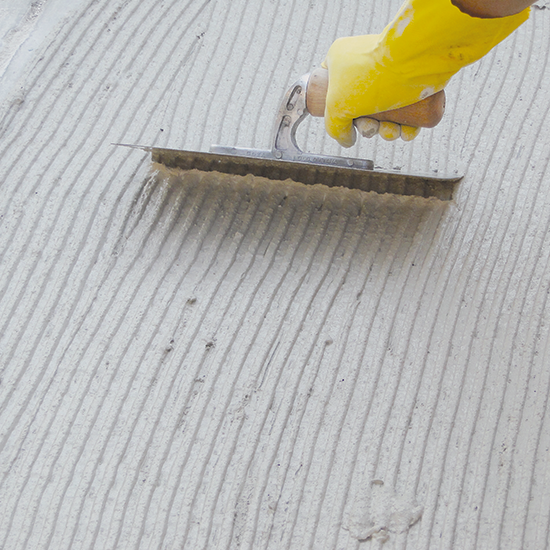 Paso 2: Aplique la mezcla sobre la superficie con llana dentada formando estrías.