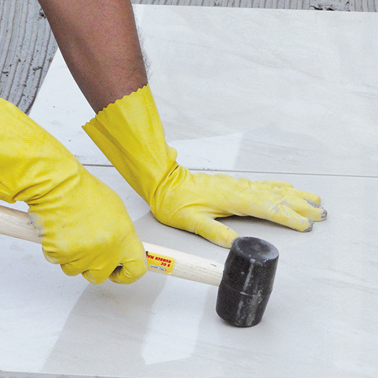 Paso 5: Con un mazo de goma golpee la placa, empore las juntas con Sika Porcelana.