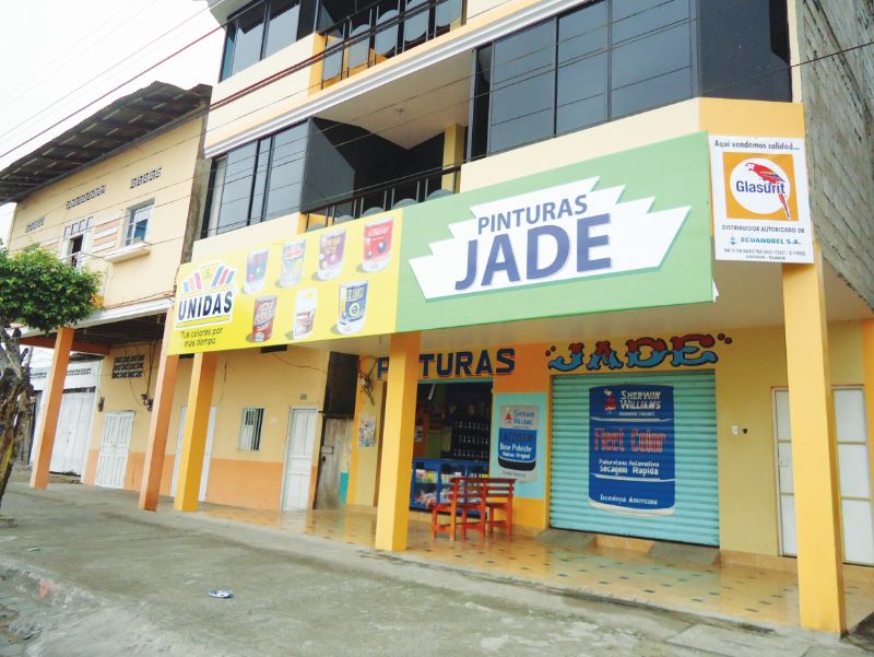 Para conocer más acerca de esta distribuidora de pinturas, conversamos con su propietaria, Olga Verdesoto Carófalo. Ella comenta que su negocio empezó hace once años. “Mi esposo y yo usamos nuestros ahorros y decidimos crear Pinturas Jade, con la finalidad de ofrecer a los habitantes de Valencia y de sus alrededores las mejores líneas de pinturas, tanto para el sector automotriz como para acabados de construcción. Y la verdad es que nos ha ido bien”.