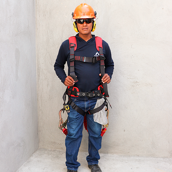 Paso 1: Personal de instalación debe usar equipo de protección personal (EPP), conformado por: casco, arnés, gafas, guantes, tapones auditivos y botas punta de acero.