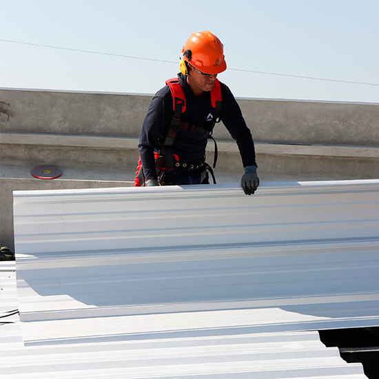 Paso 4: La instalación se inicia de abajo hacia arriba, con el uso de la atornilladora se fija la plancha metálica a la estructura usando pernos autoperforantes de 12x14x2½”, con la ubicación de la primera plancha se determinan volados.
