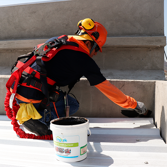 Paso 6: Previo a colocar el remate cumbrero en la parte superior de la cubierta se procede a hermetizar con lámina asfáltica. El cumbrero se lo fija a la plancha con pernos autoperforantes de 14x14x7/8”.