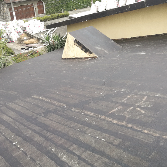 Paso 3: Inicio de instalación de teja, por medio de un timbrado para asegurarse la alineación de la instalación, colocación de teja por medio de soplete en la cara posterior al gránulo. Se inicia la instalación desde abajo hacia arriba.