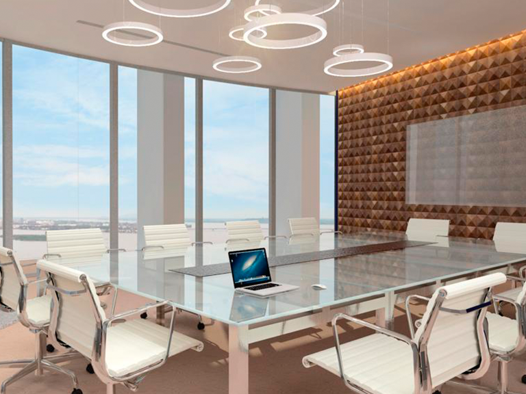 Este imponente edificio multifuncional tiene un diseño que aporta al desarrollo urbano sostenible, con la aplicación de prácticas que generan ahorro de agua potable, menor consumo de energía con la instalación de láminas UV en vidrios, además de aleros que dan sombra y disminuyen el impacto solar en el interior.