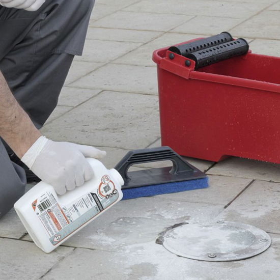 Dejar actuar el producto sobre la superficie durante 3 minutos aproximadamente, y frotar con un cepillo para profundizar la limpieza.
