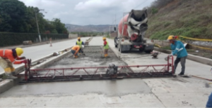Los trabajos en el acceso a Bahía de Caráquez se reanudaron. Actualmente, se realiza la excavación y limpieza para construir aceras en el kilómetro 3, y en el kilómetro 2 para fundir los paños de hormigón de 28cm de espesor de la vía.