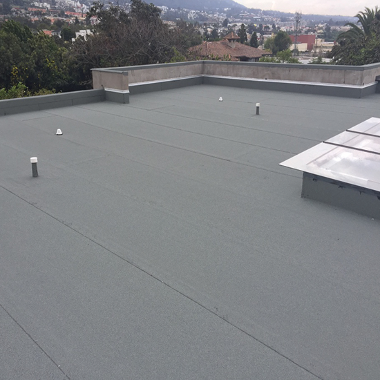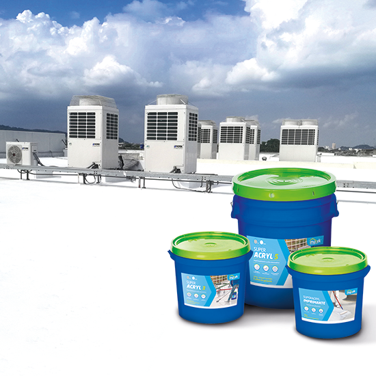 Para el segundo efecto que es la concentración de calor en la cubierta por la aplicación de impermeabilizantes en colores oscuros; se ofrece el sistema impermeabilizante reflectivo, el cual consiste en reducir la concentración de calor por medio de nuestro producto Superacryl, el cual tiene ventajas de reflectividad gracias a su tonalidad blanca, además de tener una alta elongación, acoplándose perfectamente a los movimientos de la superficie donde se aplique. Al ser también impermeabilizante, esta solución puede ser aplicada directamente sobre las losas y cubiertas metálicas y así reducir la concentración de calor.